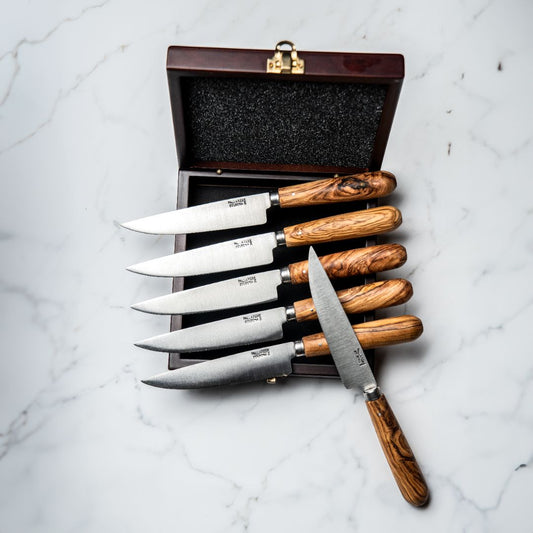 SET CUCHILLO CHULETERO OLIVO / INOX