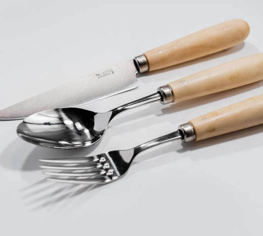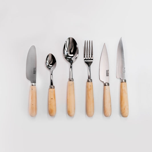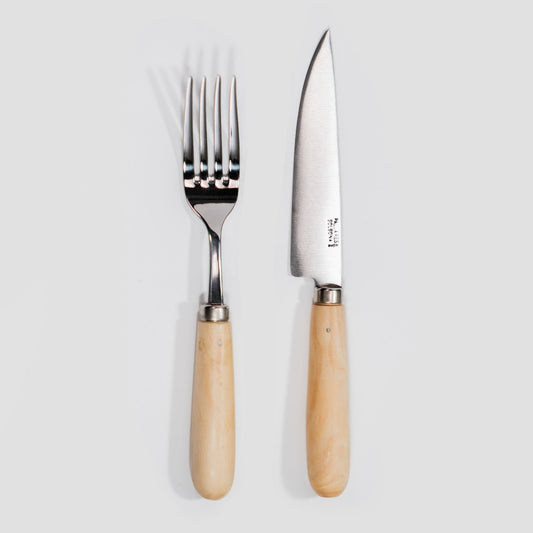 SET CUCHILLO + TENEDOR MADERA OLIVO / INOX